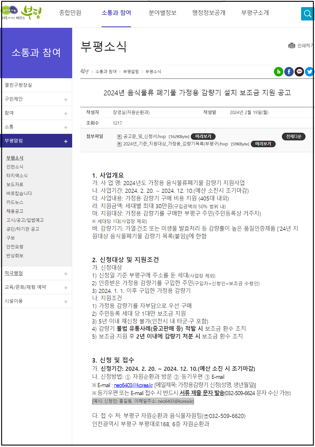 다. 접 수 처: 부평구 자원순환과 음식물자원팀(☏032-509-6620)